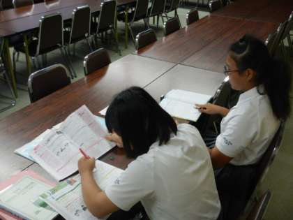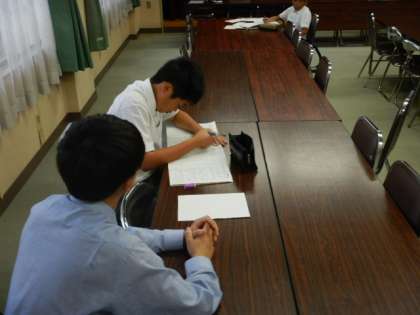 多目的室では放課後学習会が行われており、生徒たちは自主学習に励んでいました。