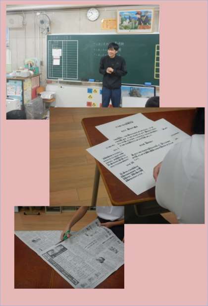 先生より、「さつまいもの収穫時期」「収穫準備」「収穫方法」などについて説明があり、新聞紙を切るなどして準備をしました。