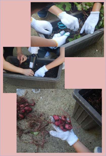 本日、わかば学級で春に植えたさつまいもの収穫をしました。