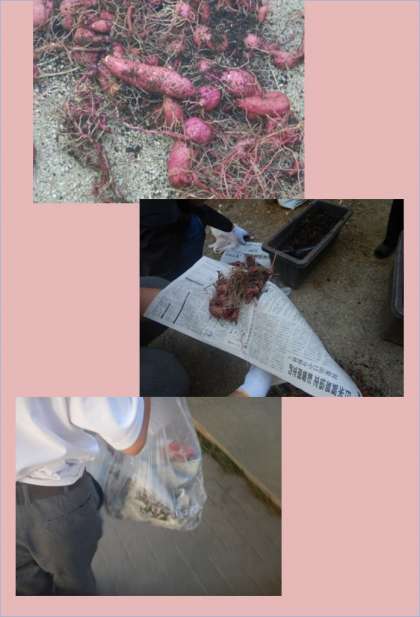 ツルを切ったあと、土の中をさがすと思ったよりも小さなさつまいもが出てきました。