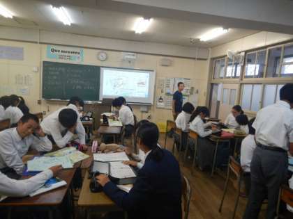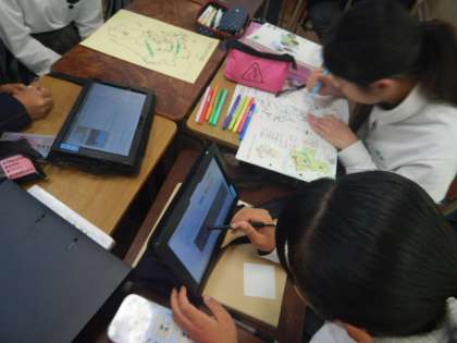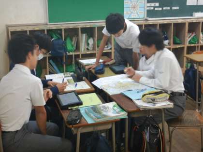 生徒たちは九州について班ごとにテーマを決めて、タブレットで調べてまとめていました。まとめが終わると、班ごとに発表をする予定です。