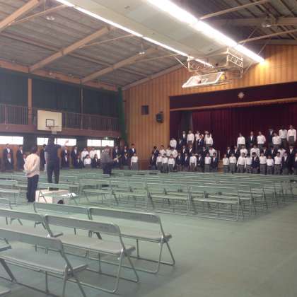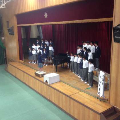 各クラスの課題曲、自由曲のあと、学年全員の合唱リハーサルも行われました。