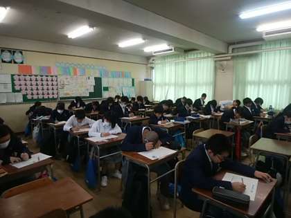 早く終わった人から自分の勉強やタブレットドリルを使ってテスト範囲の復習をしていました。