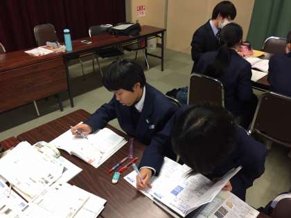 テストのために残って勉強している