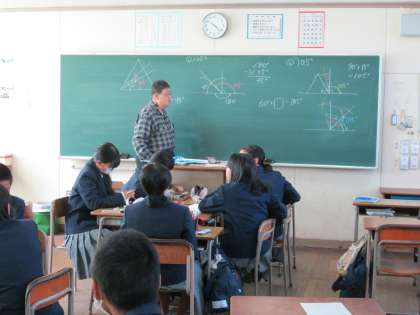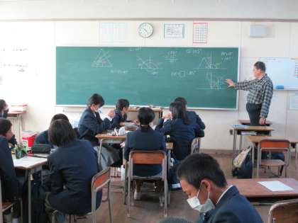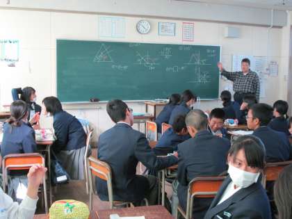 本日、2時間目。2年の数学科で授業研究が行われました。