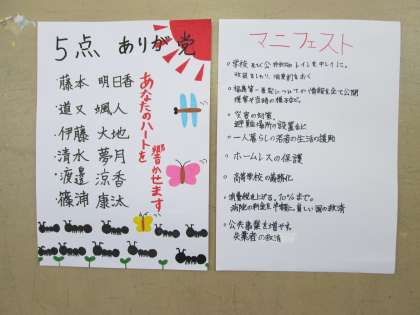 3年社会科 オリジナル政党「マニフェスト」!
