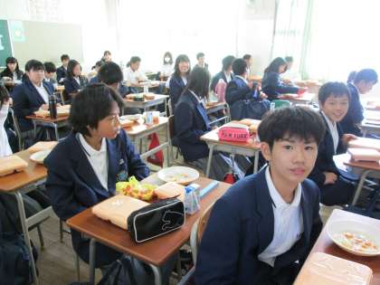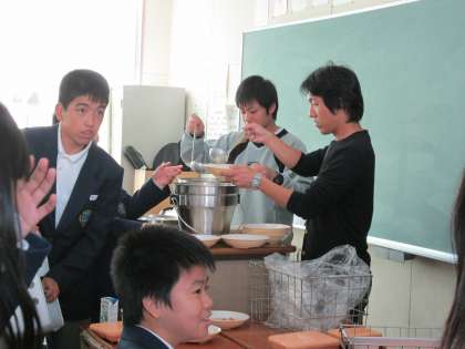 温かいシチューは、少しスープぽかったようですが、ご飯にかけていただいた生徒も多かったようです。