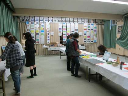多目的室では、PTA役員さん、実行委員さんが、保護者・地域の作品を準備していただいています。