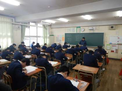 本日1〜5限目まで、3年生は第4回実力テストに取り組んでいます。受験校決定にも関わってくるテストなので、最後まであきらめずに力を出し切ってほしいと思います。