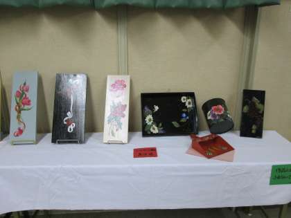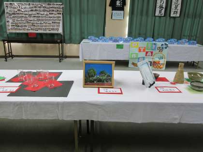 先生方、保護者の皆様、PTAのOBの皆様の作品が並びます。