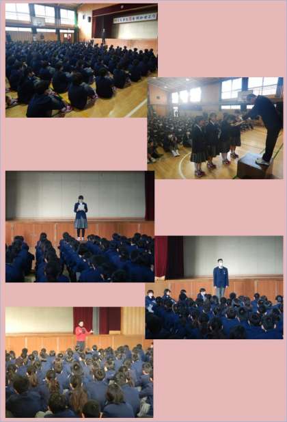 本日、朝の全校集会では校長先生から、将来の夢を思い描くことについてお話があり、表彰伝達では7日(土)のリバティ・アートフェスタ2020に参加した演劇部の表彰がありました。