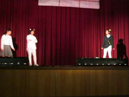 演劇部の劇は、「猫の恩返し」。映画を自分たちでアレンジして取り組みました。