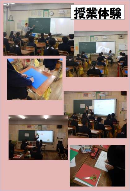 本日、午後より校区の泉尾東小学校、北恩加島小学校の6年生対象の「授業体験・部活動体験」を行いました。中庭に集合した6年生はクラスごとに教室に入室し、中学校の授業を体験しました。