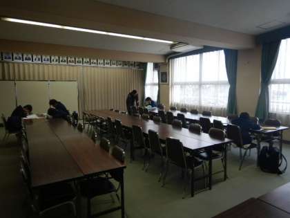 1年の補充学習とは別に、多目的室では自主学習会も行われ、懇談待ちの生徒なども参加しています。