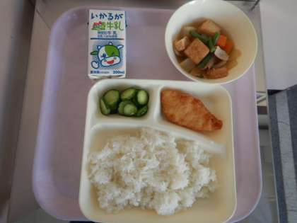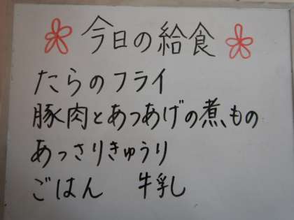 たらのフライは外はサクサク、中はふんわりです。ご家庭ではソースやタルタルソースをかけて食べることも多いと思いますが、給食では何もつけません。それでもとてもおいしいです。