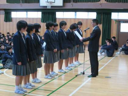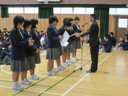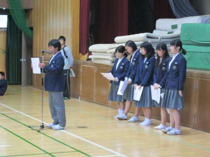 生徒会・学級役員の認証式に続き、全校集会を行いました。