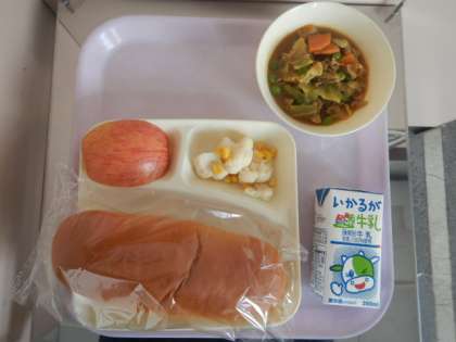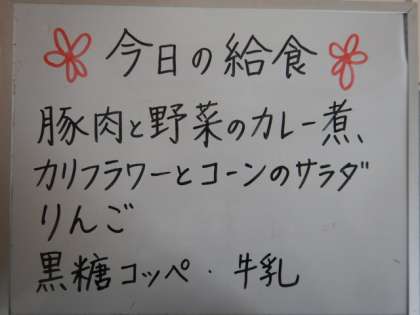 今日は「豚肉と野菜のカレー煮」でした。ふつうのカレーライスとはまた違って、だしの風味がほのかにあり、おいしかったです。