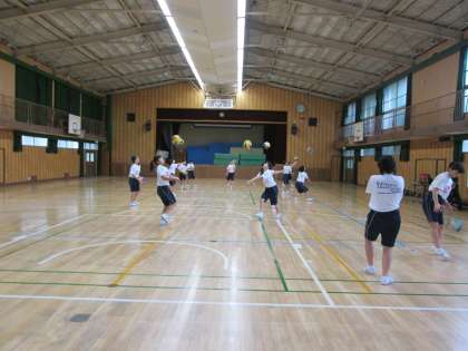 女子は体育館でバレーボール。