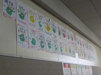 後ろに、クラスメイト全員の夢が「手形」で つかめドリーム!