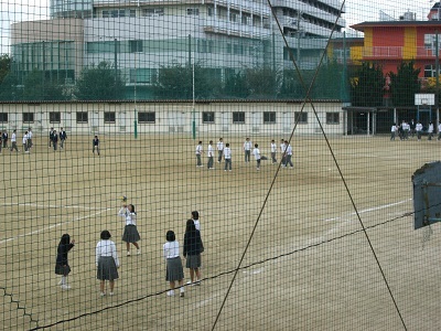 少し温かくなり、ボールを使って多くの生徒たちが楽しんでいます。
