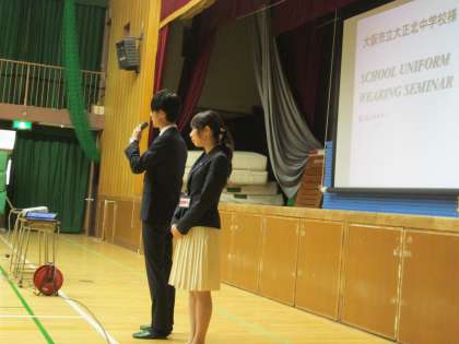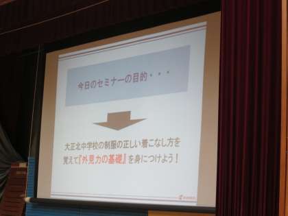 5日(水)6限、体育館において、制服の着こなしセミナーを行いました。