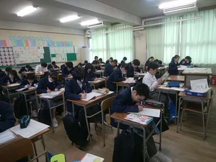休み時間中にはテキストを配り終え、早々に取り組む前向きな姿が見られました。