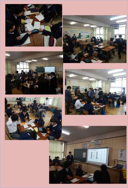 授業は1年3組の国語を2教室に分割して「相手に伝わる文を書こう 〜図を文に表そう〜」をテーマとして、市内から多くの国語科の先生方が参加する中、本校教員が研究授業を行いました。