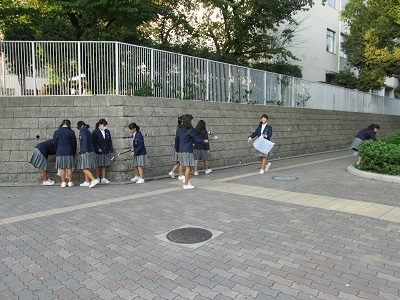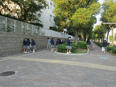 本日はソフトテニス部が正門まわりの落ち葉を集めてくれました。