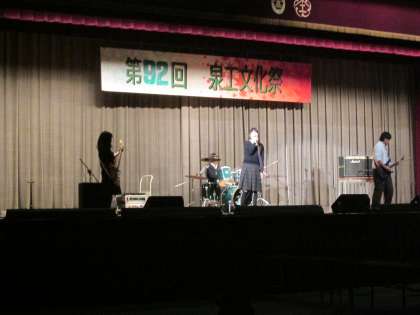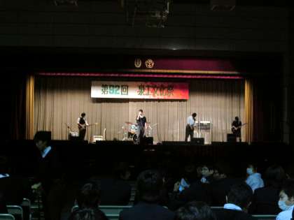体育館では舞台発表が行われ、軽音楽部のステージが盛り上がっていました。