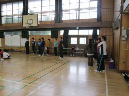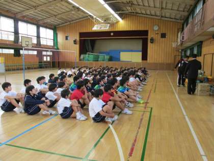 体育館で、運動部や文化部の有志が、保護者チームや教員チームと戦います。
