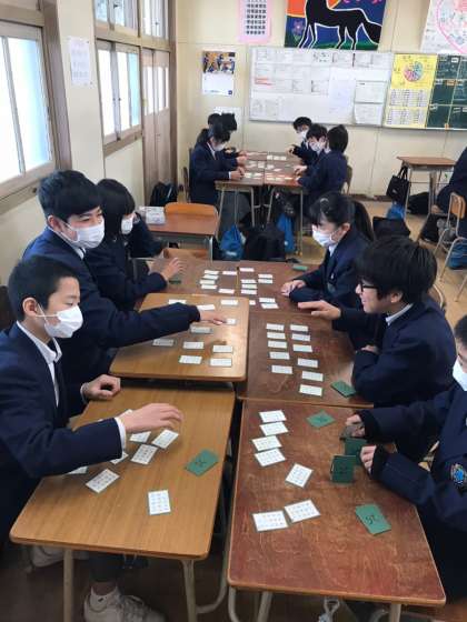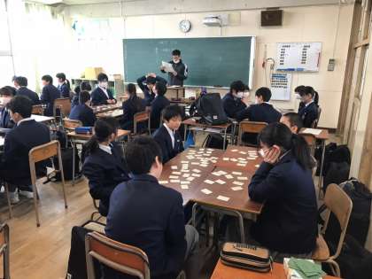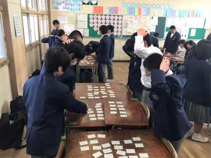 小学校の時にもやったことがあるようで、何人かの生徒は上の句だけで札がとれていました。
