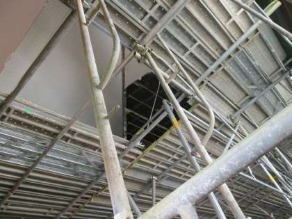 先週から始まった工事ですが、吊り天井の解体が開始されました。