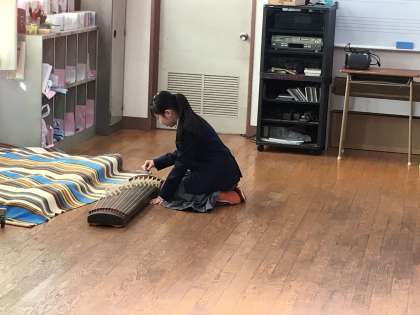1年生の音楽の授業で、お筝(こと)の実技テストをしました。