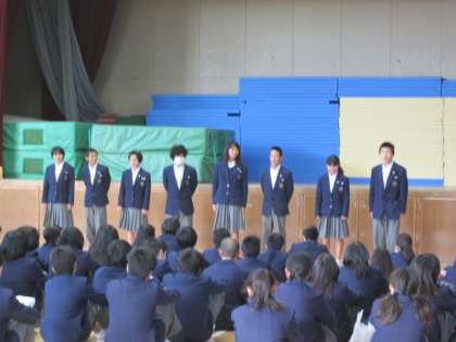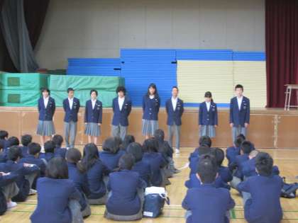今朝は、新しい学年代表がこれからの抱負と、明日の校外学習の成功に向けての思いを伝えてくれました。