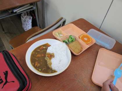 火曜日は食缶の日。本日はチキンカツカレーです。