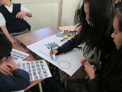 自分たちで写した写真をもとに、記事の内容を考えていきます。