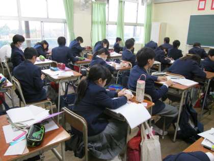 来週から12月。1年の国語の時間で、年賀状の書き方指導が行われました。
