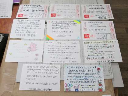 毛筆とまではいきませんが、表書きも裏書も、下書きをして指導を受け、清書していきます。美しい字で送りたいものですね。