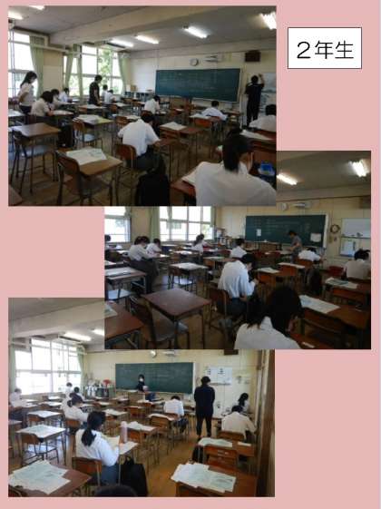 2年生は3分割の分散登校をして学習の確認、3年生は午前、午後の2分割登校をして授業を実施しています。