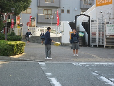 そんな中、あいさつ運動で生徒会執行部が、交通安全の取り組みを。