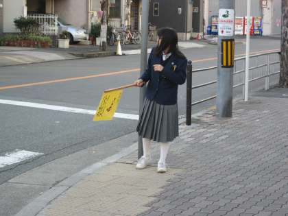 手袋もせずに、素手で旗を持ち、頑張ってくれています。感謝!