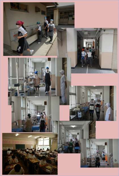 給食当番はしっかり手洗いをして配膳室に食缶などを取りに行きます。