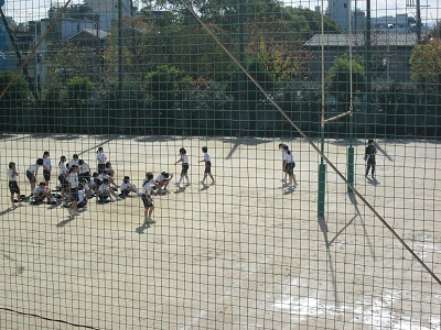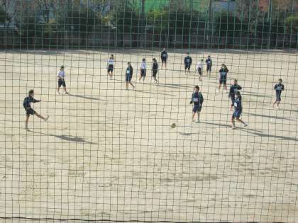 長距離走やサッカーと、女子体育では風に負けずグランドを走り回っています。