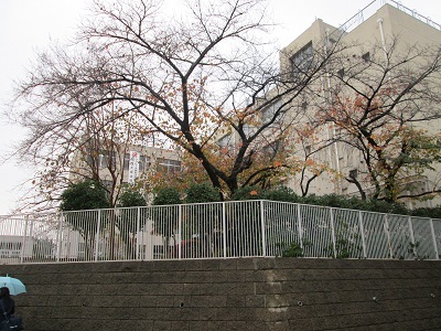 正門の桜も雨に打たれ、紅葉の葉が少なくなってきました。