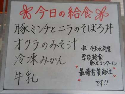 今日の献立は、令和元年度の学校給食献立コンクールで最優秀賞を受賞した献立です。