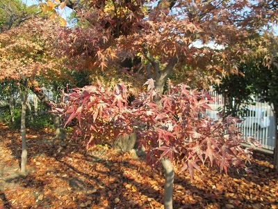 正門横の庭に、大きなもみじが4本植えられています。