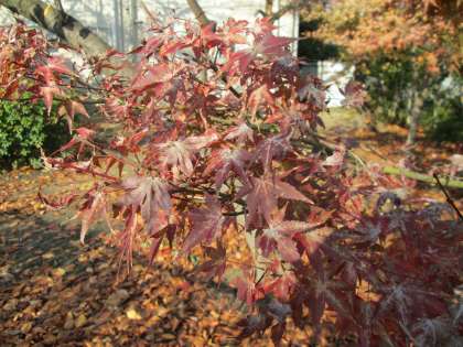 緑の葉が、秋には、「さぞ美しい赤に変身するだろう」と思っていたら、写真のとおり、緑から変化はしましたが、赤からはほど遠く・・・。