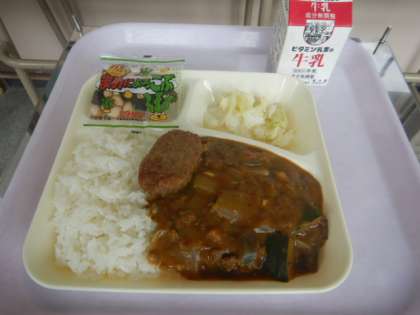 今日は夏野菜のカレーです。食材として使われている野菜は、かぼちゃ、玉ねぎ、なす、トマト、ピーマン、セロリです。これなら野菜が嫌いな生徒もおいしくいただけそうです。