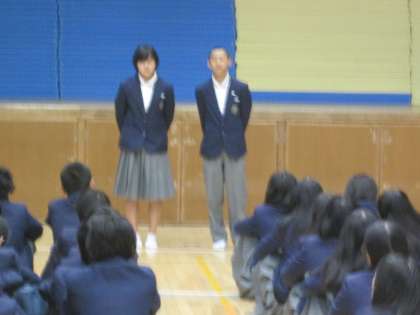 今日は、4組の学級代表から話がありました。