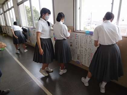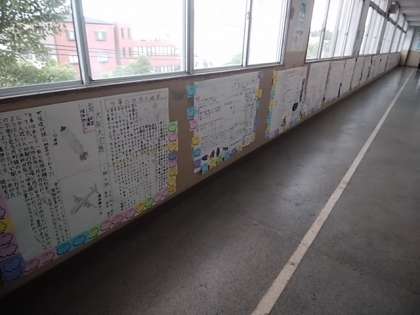 休み時間や放課後を利用して、平和新聞を廊下に掲示してくれました。